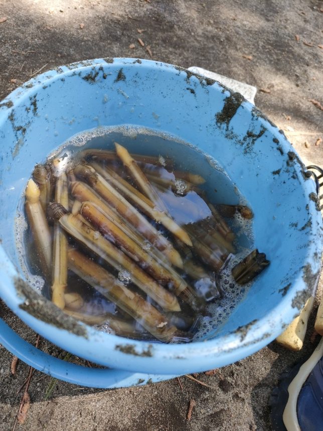ここ何年もアサリの収穫はあまりなく、マテガイは中心の潮干狩りになっていますが思い思いに潮干狩りを楽しみ、昼食後はビーチバレーを楽しんだりと有意義な一日でした。