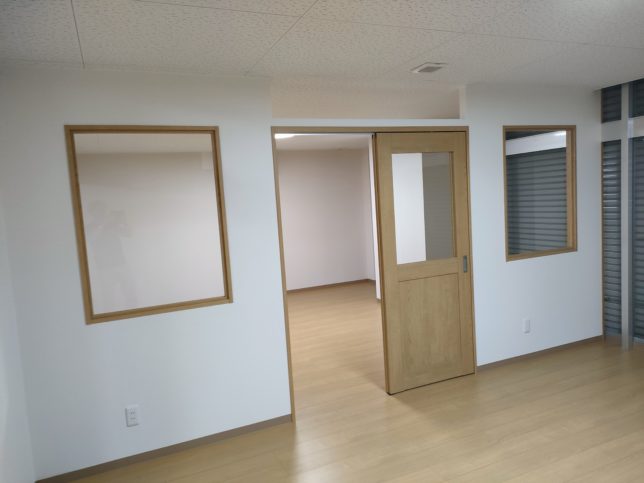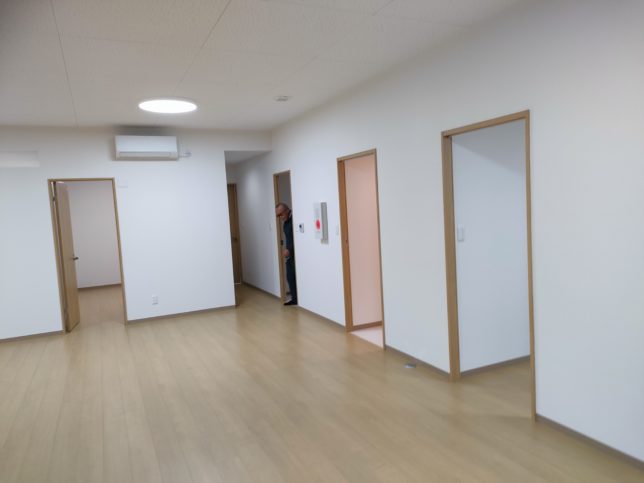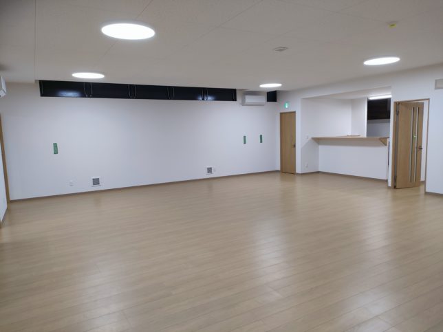 この画像ではまだロッカーなどが設置されていませんが、1日までにはお着がえを入れておくワイヤーロッカーとランドセルを入れてくロッカーが設置されます。